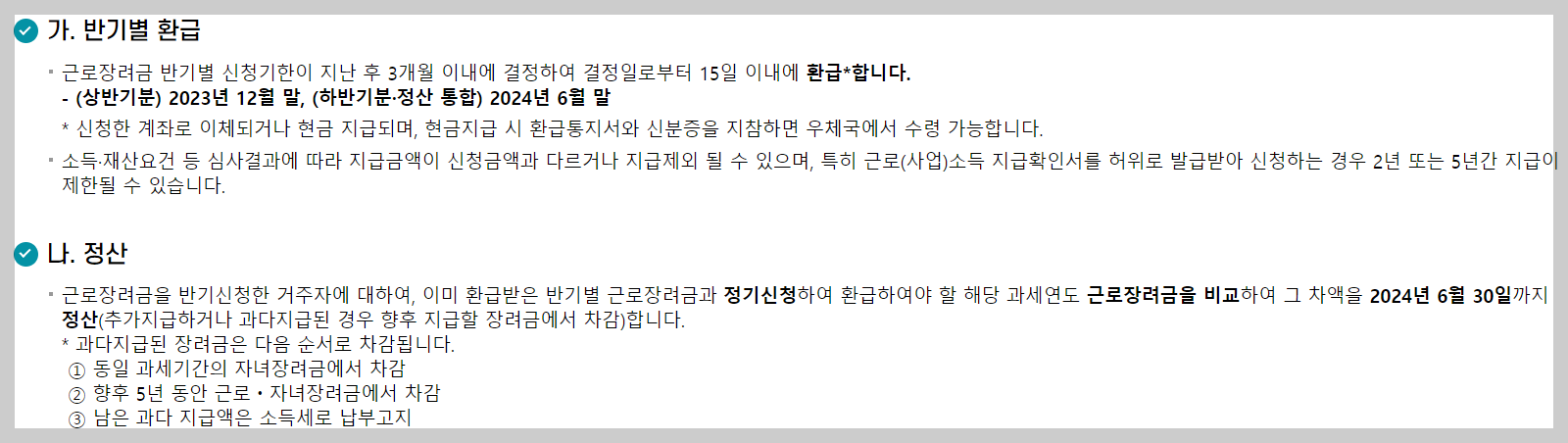 근로장려금 반기별 환급 및 정산