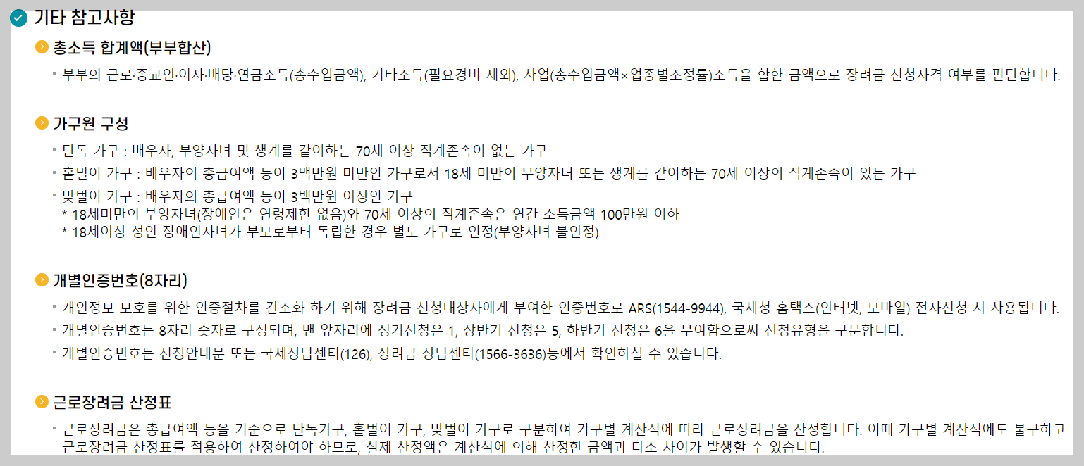 2024.03.02 - [근로장려금] - 근로장려금 사전 계산 확인 해 보기